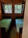 We stayed in the E cabins on the quiet side of the park. The cabin was comfortable. The bathroom across the street was very clean. We cooked on both the stove and campfire. Pushed two cots together and used a queen fitted sheet to make a double bed. Nice having a fridge to keep food and wine cold. Wish I had brought along a dish pan to get water from the shared spigot to also do dishes in. The one overhead light was very bright so a portable camplight is recommended for coziness. Saw people arriving at cabins without checking in at Visitor's Center first - you have to pick up your key. The area was extremely quiet and peaceful. The overall park is spectular with many scenic views. Hiking can be short walks or long trails. We took an afternoon trip to Keuka Lake and visited several outstanding wineries. Hammonsport is nice shopping stop too. Overall a great long weekend trip.