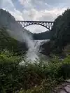 The upper falls and middle falls are the highlight of the park and is often the most congested. I would start your day off here for sure so you can enjoy it and take pictures without the crowds. Both are very easily accessible from the parking lot. We actually parked near the upper falls and then drove to the middle falls so we didn't have to back track but the trail between them is super easy and serene. The upper fall is 70 ft. high and is located right beneath the Portage High railroad bridge. If you drive towards the Portageville entrance you'll actually see a small pull off area to see the top of the fall from underneath the railroad bridge. The middle fall is 107 ft high and likely just as wide. You can view this from two observation points, one right next to the waterfall and another further down the path gives you a picturesque view of the immense waterfall. This was one of my favorite waterfalls in the park!