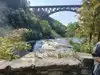 THIS IS NOW OPEN!!! It actually opened the day we visited on 7/16/20. About 2 miles downstream from the Upper Falls you'll find the lower falls. This isn't quite as accessible as the other two but you can get really close to this waterfall, enough to feel it's mist! This does require a moderate hike but is beyond worth it! Park at the octagon area for easiest access to the stairs that lead you to the lower falls, it's right behind the playground. You could park where the trail starts, it's mostly flat and shaded but there are a couple of stair cases to climb. Parking at the octagon area will save you 10 minutes each way off your trip! From the top of the stairs it is about 127 steps down and then back up but they aren't bad. Take a bottle of water to cool off after you've traversed back up it. Once you get to the very bottom of the steps, walk a little straight ahead to find the steps that lead you down to the footbridge. This can be hard to find if you aren't looking for it. The footbridge is a stone footbridge, the only one over the gorge that actually connects both sides of the park. After you're done visiting there, head back up to the main trail, where the original 127 steps ended and continue down the trail to get to the lower falls. From here it was a super easy and flat hike that did not take long to reach the falls. You'll see a meadow open up and the mist from the falls. You are close enough that you can cool off in the mist which is really awesome!!! I don't think the signs or markings for this trail is very well marked so it can be confusing to know if you are on the right trail. We were very lucky that a park ranger was on the trail and confirmed that we were going the right way. Once you're done visiting, turn around back down the path you came and back up the stairs to get back to the parking lot. At the lower recreation falls you'll also find a snack bar, plenty of picnic tables and playgrounds. At the octagon area you'll also find a nice playground and plenty of picnic tables.