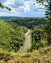 There are several pull of spots that you can park and get different views of the gorge, I highly recommend stopping at these. Archery Field overlook offers a nice horseshoe view of the gorge. Humphrey's overlook and great bend overlook, and Snake Hill Overlook was neat as well. Be sure to stop at Wolf creek to enjoy the rolling river under the bridge and some nice scenery. Tea table has some really neat stone slab picnic areas as well as a gorgeous view. Gardeau overlook, Hogsback, and Mt. Morris Dam overlooks were also neat stops. My personal favorites were Inspiration point, Archery field, Humprhey's and Wolf Creek.