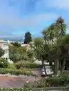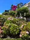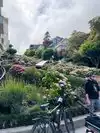 Super steep street with lots of plants along the way and older buildings all the way up. Worth the climb just to see the cars head down from the top!