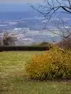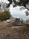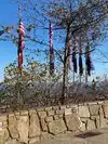 It has a small walking paved trail and other trails that lead you down the mountain. Old out buildings and monuments.