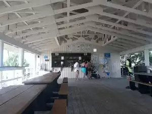 Sat under grass tree hut for hours enjoying the wonderful breeze on an extremely hot day. Clean facility with air conditioned pavilion with concession stand provided.