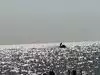There are birds walking the beach or swooping overhead which adds a nice touch to the scene.