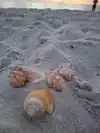 In the summer, there are lots of sanddollars, starfish and dolphins around. We have seen manatees at this beach (close by).