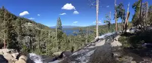 Easy parking if you get there early and short walk to falls. Great views, perfect place to take pictures with Emerald Bay in the background.