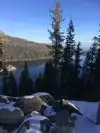 Saw the area from South Shore- looked like Snow. As we drove around Emerald Bay, we discovered it was Lower Eagle Falls. We stopped and walked down the stairs to see the water cascading over the rocks. What an unexpected treat!!! Will recommend stopping by to anyone in the area,.