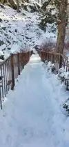 Snow was very spring like, enabling us to get up to the lower falls, they are lovely. Our experience was enhanced by meeting a man who played his wooden instrument. very surreal. it is very pretty and the lake view was amazing.
