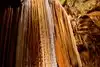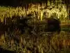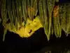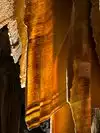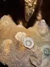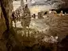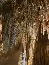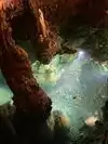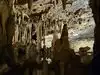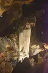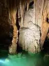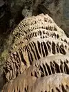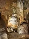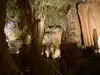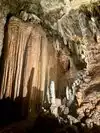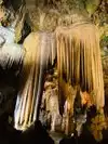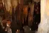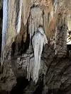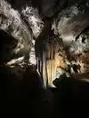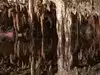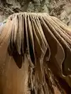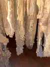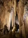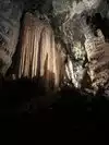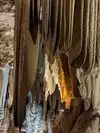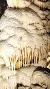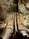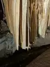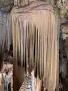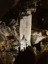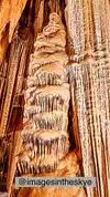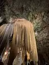 The tall caverns soar high above in places. Stalactites hang and stalagmites reach. Where they finally meet a column or pillar is formed. There are sheets formed by these speleothems that look like folded cloth and have been described as scarves, shawls and draperies.
