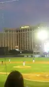 The game was exciting up till the 6th inning then the visitors blew it open :(. The park is a great venue with the water and the casinos around it lit up at night.