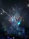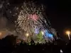 The fireworks show is really a separate show, but with thousands of people under the rain, it's 40 minutes late.