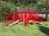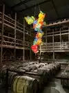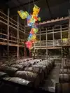 Maker's Mark is one of the gems of Kentucky with its signature black buildings with red shutters. The grounds are beautiful and are a perfect setting to display Chihuly's work.