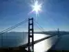 The best time to take pictures of the Golden Gate Bridge is late afternoon when the Sun shines on it and makes it very bright red.