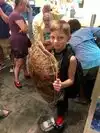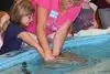 The touch pool also contains a very anti-social Atlantic stingray, a huge hermit crab and some horseshoe crabs, and a beautiful Florida Horse Conch. The guide relates fascinating information about all the creatures and answers questions from visitors.