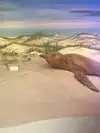 After you pay, you go to the right and through the gift shop area to the floor in which there are several aquariums and a touch pool for sting rays. You pass out to the turtle area where you can look over several tanks which hold turtles which are in for rehabilitation.