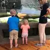 Our grandson fed the rays .