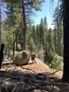 You park and take a shuttle in to the grove. The trail is easy and wide, but climbs up going in. It is about 0.6 miles to the Giant Grizzly but there are plenty of trails here to see other giant trees. This is just inside the South entrance so hit it going either in or out of the park. Restrooms are at the car lot and again a ways in to the grove. Great trees!