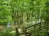 If it's nice out, I suggest wearing tennis shoes and walking the trails out back down to the swamp area. My son loved seeing the trees growing underwater and the moss.
