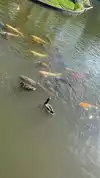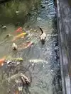 Bring quarters.....You are able to buy fish food to feed the Koi. Actually, you can sit next to the edge of the pond and plop food into the gabbing mouths of the large aquatic monsters. Do NOT feed fish human food or breads.