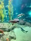 The Kelp Forest is a huge tank that goes over both floors, with sharks, incredibly large, totally relaxed fish and typical Californian kelp forests.