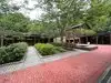 Visitor center architecture was reminiscent of Frank Lloyd Wright architecture Surrounded by woods. There are not metal detectors to get through the visitor center however they do have you take any sharp implements or weapons from your purse, pockets or backpacks and lock them up in a clear Lucite locker of what you get a key to carry with you and you can retrieve those at the end of your day.