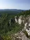 A variety of trails offer you the option of hiking a more challenging course or an easier course, but all will take you through ferny woods with rocky outcroppings and lovely views at the top.