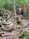 We are semi-active novice hikers and found the Hickey Trail quite challenging (but manageable). When you face the trails in the parking lot, Hickey Trail goes right (yellow markers, 30 degree climb) and Indian Monument Trail goes left (blue markers, more gradual climb). As we huffed and puffed up Hickey, we truly enjoyed the fresh running water in the brooks we passed, and we even passed a little waterfall (I uploaded a picture). This segment was the best part of the hike for me. Nearer to the summit (Squaw Peak), Hickey Trail forks into Squaw Peak Trail (red markers - you can also choose to avoid the summit, as Hickey also forks back into Indian Monument Trail). My husband liked the resting on the summit (it was spacious enough for the eight or so other parties we encountered up there) but I found the view underwhelming. It’s nice, but there are some trees in the way of a 360 panoramic view and you’re not that high up (~1700 feet). We took Indian Monument Trail on the way back for a more gradual descent (easier on the knees) and to experience the whole trail. I found Indian Monument Trail to be much flatter and kind of boring, actually. It runs by the road for a significant portion, so less in-the-woods than Hickey.