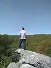 The Monument Mountain "reservation" is found on route 7 north of Great Barrington in Massachusetts. There is a parking area just off route 7 with a display offering a map. The climb is varied and fascinating. You work your way through a deep forrest, ravines and a stream. Eventually the climb is steeper and surrounded by rock cliffs. At no time do you need to use climbing gear as the trail is never so steep that a good pair of hiking shoes cannot suffice. At the top you can look straight down to the valley below. Small children need to be watched carefully as mothers could suffer panic attacks at how easy it would be to fall off the steep rocks. Just be careful and enjoy one of New Englands most dramatic mountains. The total time to the top is not more than 35 minutes and even shorter than that if you are an experienced mountain goat!
