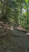 The trail was through lush woods. And it was lovely. But most of our attention was focused on trying to get to the top. I have to say, by both fitbit tracker (mine and my husband's) and a GPS phone app, the trail was much longer than the promised 1.5 miles. Again, had this been a less intense and uphill trek, the distance wouldn't have been a problem.