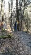 We did the Indian Head Trail which is 1.5 miles each way. It starts out a little rough stepping on rocks and tree limbs but after a few minutes you get to a clearing by the vehicle access road. There are parts that are pretty easy and flat and once in a while you get to parts that are a little harder to step on rocks and tree limbs. All of the leaves were covering the trail so it was hard to see where you were stepping and sometimes slippery from the leaves. But we took our time and it probably took us under an hour to reach the top. There is a big inscribed rock at the top. I thought there would have been more of a clearing for a better view than there was.