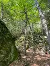 There is more than one way to climb a mountain. And if you take one option - the steeper more direct route - - you will be afforded a glimpse of a waterfall (from the parking lot and facing the mountain, go to the right). The other way is more gradual, more easygoing - - and there are different routes within this route. (This is to the left from the parking lot).