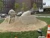 Sandcastle of George Washington is on the lawn next to Morris county Court house for short time. It was sculpted yesterday during the Annual Morristown Fall Festival. Morris Twp Destination Stop with a football of course for Football Season.