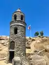 the view from the top and along the way were breathtaking. there is a cross on top of the mountain as well as an American flag and a tower on the side close to the flag.