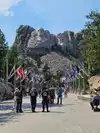 it's simply a stunning view of the presidential memorial when you walk down the Avenue of Flags. Lots of people but not really overcrowded. Beyond seeing the four faces carved into the granite peak there is much more to see and explore; some of it via many stairs. Take your time to take it all in