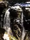 We also stopped at about mile 46 to see the Nooksak Falls, just off the byway. I've never been so scared by a sign in my life. The sign there gives a warning about 7 different ways regarding getting too close to the edge and lists the names of the many people that have died there slipping off the rocks. Now there is a heavy-duty chain link fence that would require a lot of determination to cross, so no need to fear as long as you don't get any crazy ideas. It's well worth a brief side-trip. Lovely falls where 2 forks of the river meet and continue down a deep gorge.