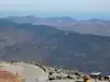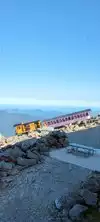 The cost to drive up is $45 for the car and driver and an additional $20 for each passenger. So for a family of 4 the cost is $105. The road up is fairly narrow with steep drops and no guardrails. The day we drove up was rainy with almost no visibility near the top. We and others had our hazard lights flashing as you could barely see if a car was in front of you. We drove to the top and parked. We needed thick winter coats gloves and hats. The wind is strong and there was snow on the ground. If one of us walked 10 feet away, they could no longer be seen. We walked up the stairs to the summit area where the first thing we saw was a closed building. Next to it was some porta potties in an enclosure. After that, is another parking lot – for workers and tours and then the Visitor Center. We could not see any of these buildings until we were right next to them, due to the visibility. In each case, we found one thing, walked a bit further then saw the next thing. To find the Visitor Center, we found first the parking lot and then followed the parking lot until we saw the building. The building has a little restaurant, gift shop, museum, visitor info and plenty of flush toilets. You can then exit the other side if the Visitor Center building, walk up a short way, to take a picture near the Summit sign. We also walked onto the observatory area, but the wind was soo strong that it was difficult to even stand still. The worst part was the drive down, as it was very difficult on the brakes. There are several pull outs with signs recommending you let your brakes cool and indeed, we needed to do that once, even though we were driving in low gear. Note: We noticed some hotel vans driving passengers to the top and back down. This may be an option if you are unsure of the drive or want to save your brakes.