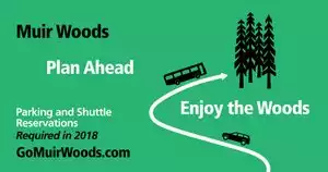 This was one of my family's most memorable nature outings. We followed the advice on the Muir Woods National Monument website, and booked our parking (mandatory in advance) and our entrance fees several days ahead to ensure that we could get an early start at 9 - 9:30. The only downside of the morning drive from SF was fog combined with curvy, steep mountain driving near the Woods. Once there we parked easily, were able to use a porta potty in the parking lot, and walked to the entrance, where there was a full rest room, a ranger doing a talk, and an easy check-in with no line. We got our trail map and headed to the main walkway, which is basically flat and well managed, with width enough for wheelchairs and handrails for those that need them. More challenging trails are available for those who want them. Because we were early there were few other visitors, and we walked for close to an hour, and saw the most magnificent ancient forest, through tree filtered light which created a rather mystic environment. After walking we went to the visitor center (more rest rooms) which had a coffee/snack bar and a gift shop, as well as tables and benches. This was a very easy and enjoyable outing for all of us, and as long as you remember to book ahead, there should be no surprises.