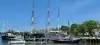 * An active shipyard showing various historic boats being restored by master boat builders.