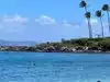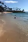 This is a gorgeous bay with pretty gentle water that turns electric blue when a cloud comes over. It also has the nicest sand and beautiful views of Molokai. There are many shaded areas due to the palm trees on the beach. I could've sat here all day with the great breezes. Not too crowded, as I'm not sure if this has public access other than the hotels that share the beach. My favorite of our trip!