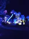 Unfortunately, that all ended this year. Instead of the diversity of lights of vision the garden is amass in boring redundancy. The lighting consists almost exclusively of colored spotlights stuck in and around the trees and bushes. After the first 100 feet you have seen it all. In the past we would spend hours walking around. This year we were through it all in 20 minutes. If you want to enjoy the effect, shine a colored flashlight around your yard and save the $30 ticket price.