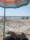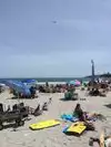 Nice family beach has snack/food concession stand. Lifeguards were very intensive on all swimmers and several rescued because on under tow and strong waves because of off shore storm. Great beach.