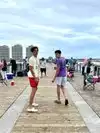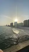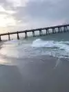 The beach was sparse when we arrived but by noon very crowded. We walked to the fishing pier and got great pics underneath it. We brought drinks w us but there is a ton thumb in long walking distance. There was no place at the beach to purchase drinks.