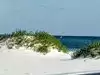 Pretty beach with nice dunes. Sand is so fine it squeaks when you walk on it. Water can be super calm and waves are almost non-existent. If the winds pick up though, surf can be rough.
