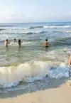 This beach is not a disappointment at all!! Breathtaking colors! Beautiful white sands! The day we went, the waves were a little rough but we had fun jumping into them. Not to bad crowded.