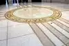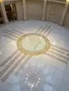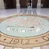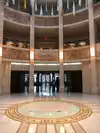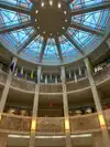 Be sure to check out the state seal on the floor in the rotunda area and look up to see the colorful ceiling skylight. One of the details mentioned is the travertine marble which is actually local to New Mexico.