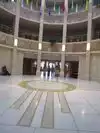 The round walls do show off the paintings and other art work in the capital. It's all from artists living in New Mexico. The building itself is a work of art, with striking marble and mosaic. I wish we had known about the walkway, to see more excellent art there.