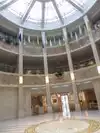 It closes at 5 pm and is free with about 30 free parking. Its a modern building and you more or less have access to everything. The rotunda has an echo where you can listen to people across the room, but I couldn't find the exact spot. I enjoyed the building more than any of the other buildings in Santa Fe.