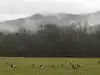Main drive through the park with many great overlooks. Lots of travelers on the road, as expected. Unfortunately, we found out the true meaning of great Smoky Mountains and were unable to view anything at all due to the heavy fog as it started raining and the views became completely 100% obstructed. We moved on and the fog quickly lifted and we were treated with a huge elk crossing the road right in front of us. Amazing!