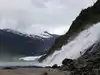 From the Mendenhall Glacier Visitors Center, with its telescopes for spotting mountain goats, its exhibits, its short and informative movie... this is an easy walk to the base of the magnificent Nugget Falls. It roars out of the mountains and empties into the lake near the front of the Mendenhall Glacier. Photo opportunities abound.