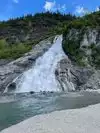 Well worth the walk to the falls. The falls are beautiful, and there is a fun sand bar like inlet to explore. Plus, you get an even better view of the glacier!